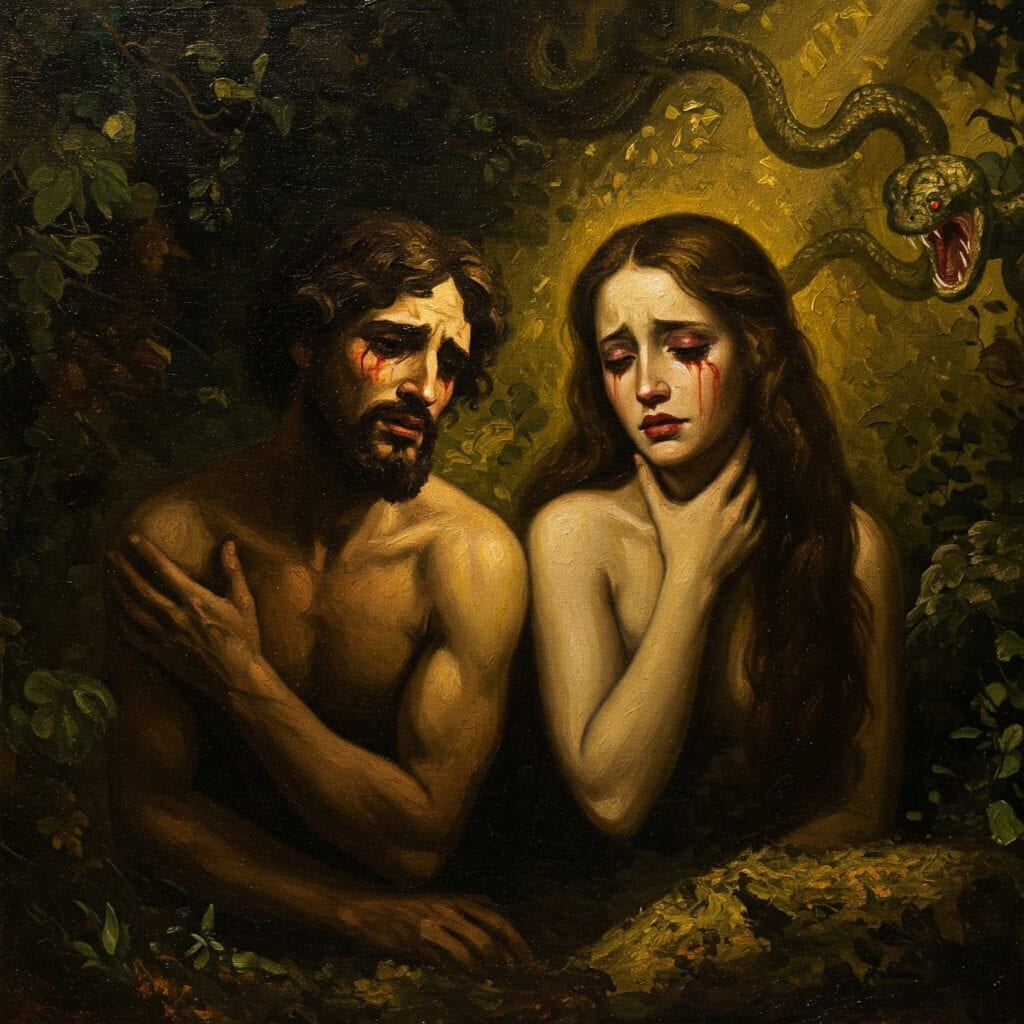I Ewa ulega. Widzi, że owoc jest „dobry do jedzenia, rozkoszny dla oczu i pożądany dla zdobycia mądrości” (Rdz 3,6). Pożądliwość ciała, pożądliwość oczu i pycha żywota – te trzy korzenie grzechu, o których pisze później św. Jan (1 J 2,16), są już obecne w tej scenie. Ewa bierze owoc, je i daje swojemu mężowi, który był z nią. Adam, który do tej pory milczał, bierze i je. Jego milcząca obecność i bierność w momencie kuszenia żony, a następnie świadome przyłączenie się do jej nieposłuszeństwa, czynią go równie odpowiedzialnym, a według niektórych interpretacji (jako głowy stworzenia) nawet bardziej. To nie był niewinny błąd czy drobne potknięcie. To był świadomy akt buntu, wyraz nieufności wobec kochającego Boga, wybór własnej woli ponad wolę Stwórcy. To zerwanie przymierza miłości.