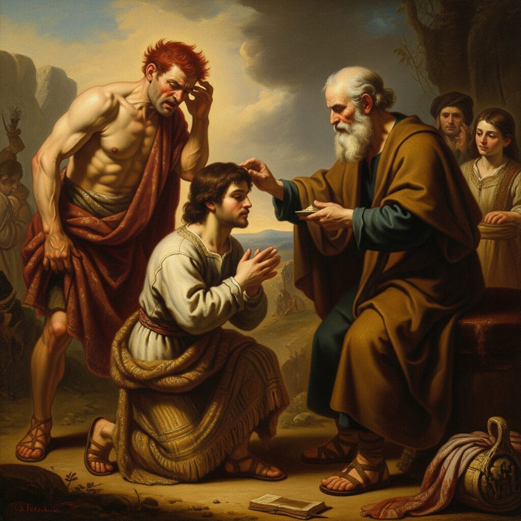 - Moc przebaczenia i pojednania: Scena spotkania braci pokazuje, że nawet głęboko zakorzeniona wrogość może zostać przezwyciężona przez łaskę, pokorę i gotowość do przebaczenia. To wezwanie dla nas, byśmy szukali pojednania tam, gdzie relacje zostały zerwane.
