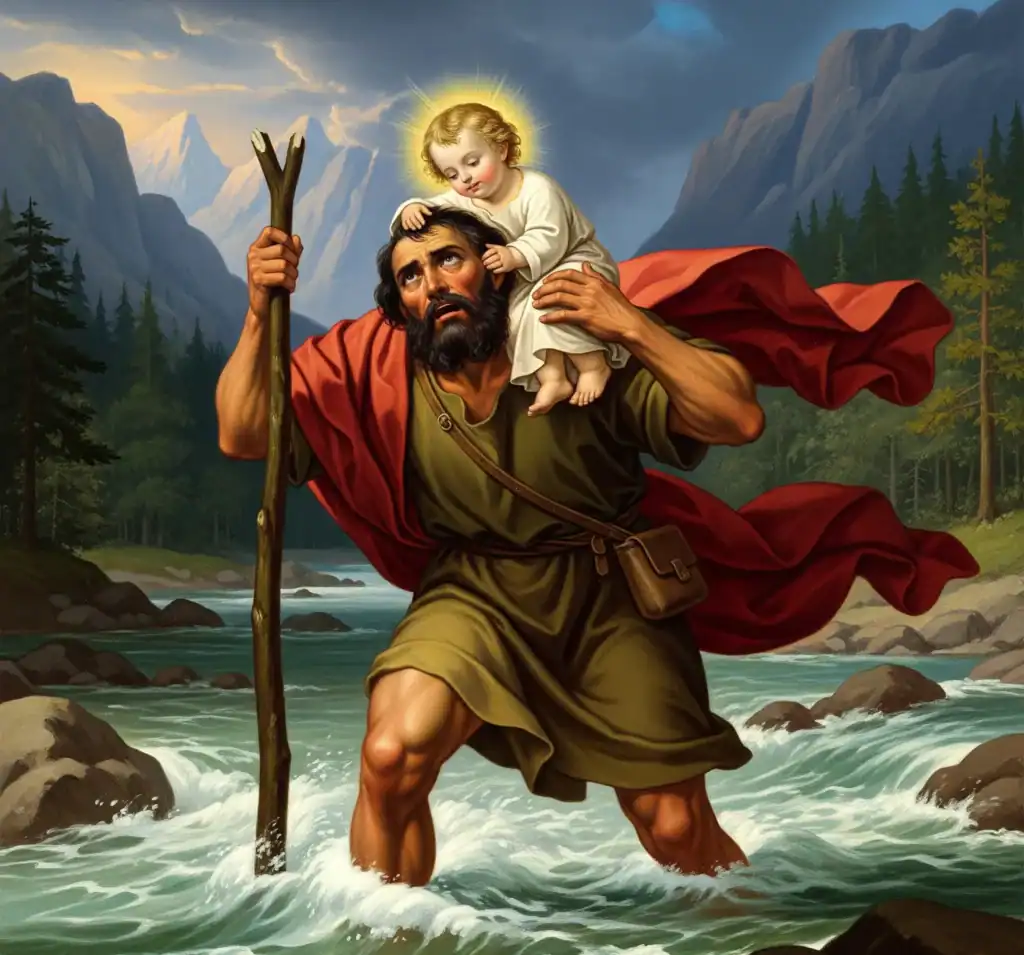 - Patronat podróżnych: Legenda o przeprawie przez niebezpieczną rzekę w naturalny sposób uczyniła go opiekunem tych, którzy pokonują przeszkody. Rzeka symbolizuje nie tylko fizyczne zagrożenia, ale także wszelkie trudności i pokusy na drodze życia.